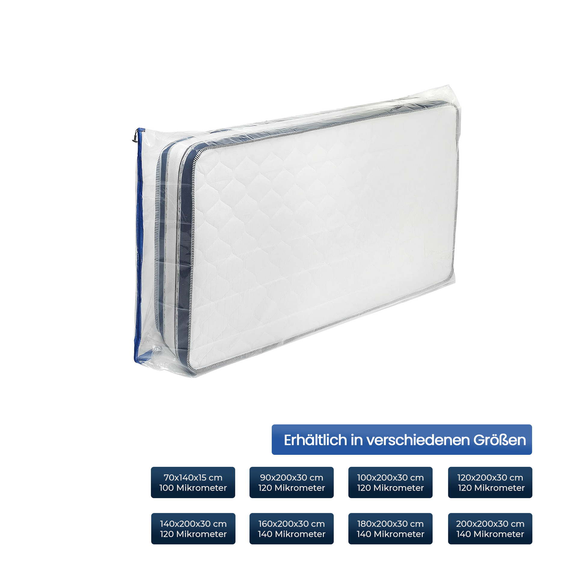 - Das wichtigste Kriterium bei der Auswahl einer Matratzenschutzhülle ist die Folienstärke. Unsere Matratzenschutzhülle bietet eine beeindruckende Stärke von 120 Mikron, die in diesen Maßen sonst nicht angeboten wird, was unsere Schutzhülle zu einer einzigartigen und effizienten Wahl macht.